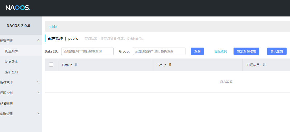 8.出现nacos服务管理后台界面,说明nacos服务器启动正常!