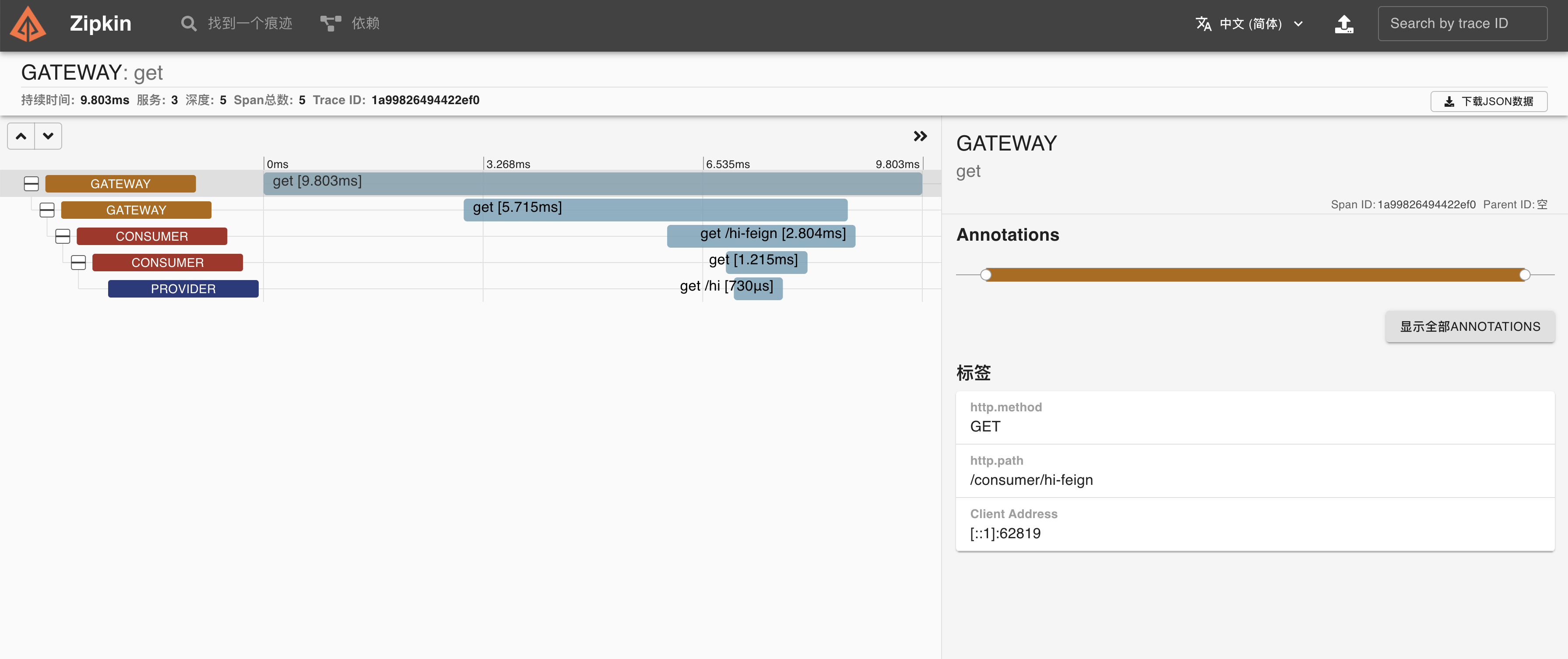 Spring Cloud Sleuth 主要功能就是在分布式系统中提供追踪解决方案,并且兼容支持了 zipkin,你只需要在pom文件中引入相应的依赖即可。