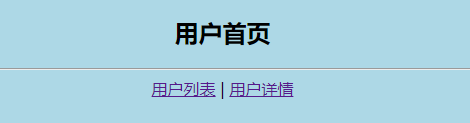 content:`<h2>用户首页</h2><hr><div><a href='javascript:goto("/users/list")'>用户列表</a> | <a href='javascript:goto("/users/detail")'>用户详情</a></div>`