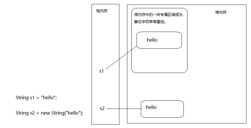String s3 = new String("hello"); //在堆内存中开辟新空间