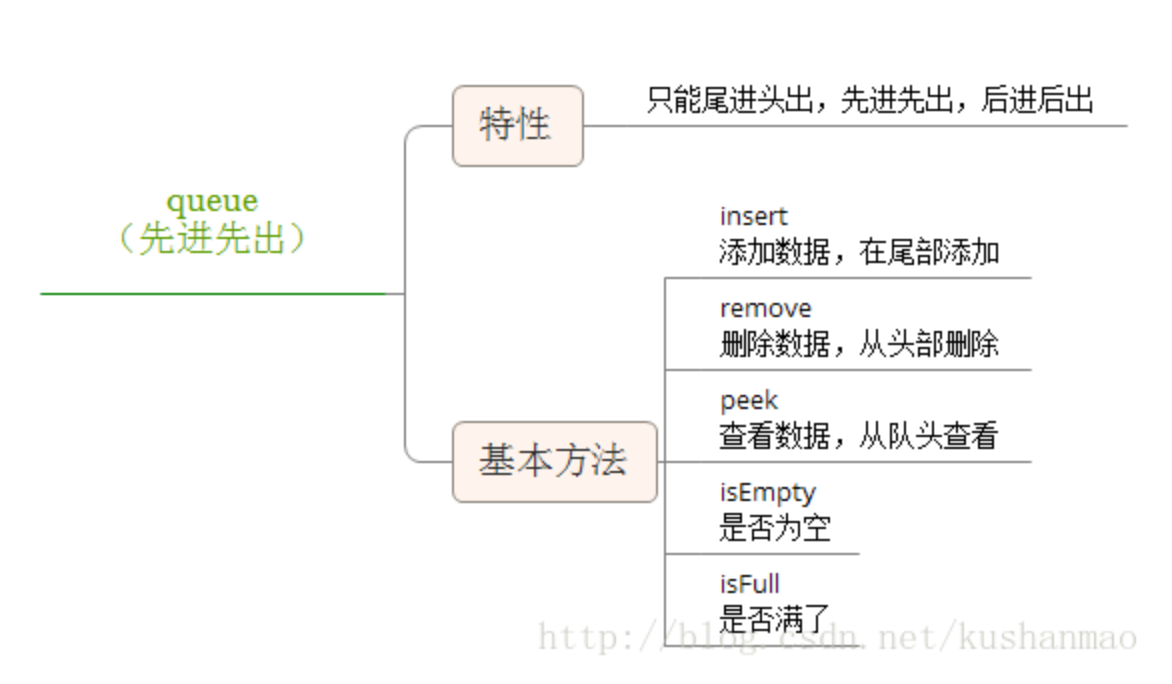 队列:和栈一样,队列也是一种受限的线性表,不一样的是队列只能在队头(front)删除元素,在队尾(rear)插入元素。