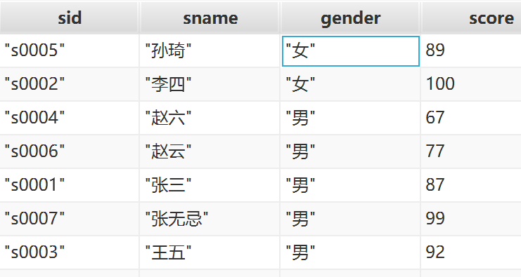 Students stu = new Students("s0008", "风清扬", "男", 98);
