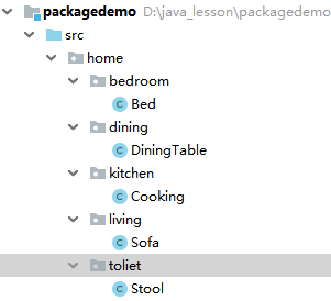 下面代码的包结构,就完美表达了一个家里面各个类的组织结构: