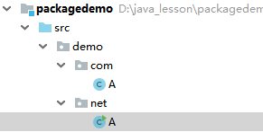 程序也是一样的道理。例如:我们分别在dome.com和dome.net下都创建了A类。结构图如下: