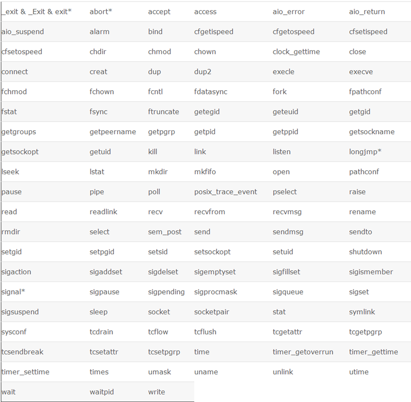 Linux的常见可重入函数列表: