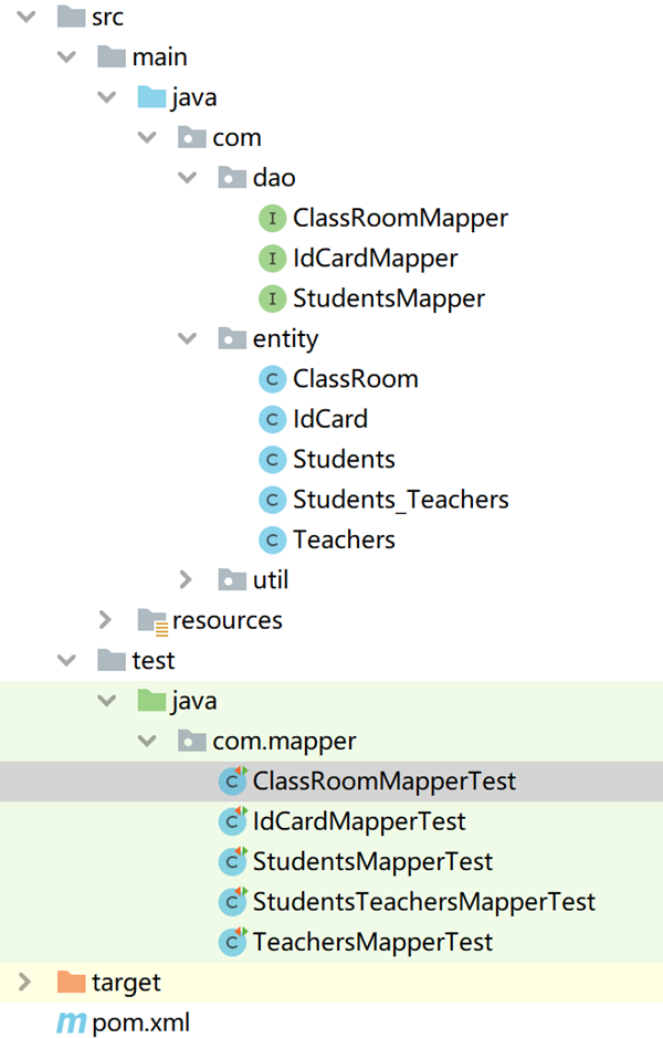 1.在com.dao包下修改StudentsMapper和新建ClassRoomMapper
