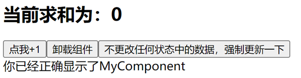 <button onClick={this.force}>不更改任何状态中的数据,强制更新一下</button>