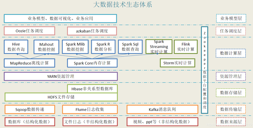 - HBase:HBase是一个分布式的、面向列的开源数据库。HBase不同于一般的关系数据库,它是一个适合于非结构化数据存储的数据库。