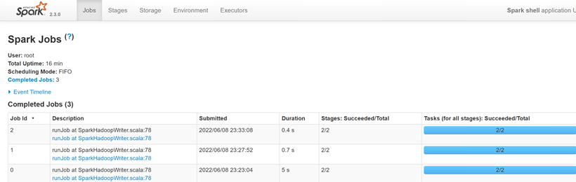 在提交spark任务运行后,日志中会输出tracking URL即任务的日志链接。在浏览器中打开tracking URL后,默认进入Jobs页。Jobs展示的是整个spark应用任务的job整体信息。