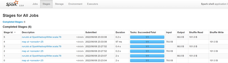 - Shuffle Write: 为下一个依赖的stage提供输入数据,shuffle过程中通过网络传输的数据字节数/记录条数。应该尽量减少shuffle的数据量及其操作次数,这是spark任务优化的一条基本原则。