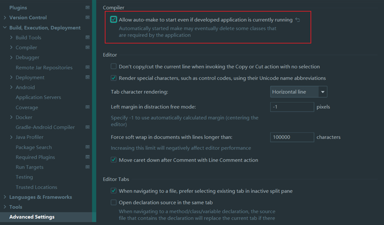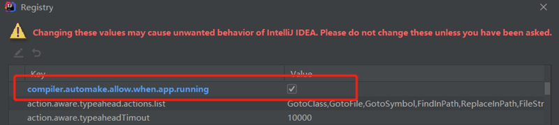 3)快捷键ctrl + shift + alt + / ,选择Registry,勾上 Compiler autoMake allow when app running。