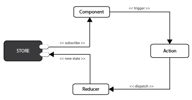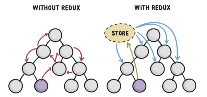 在Redux中,所有的数据(比如state)被保存在一个被称为store的容器中 → 在一个应用程序中只能有一个。store本质上是一个状态树,保存了所有对象的状态。任何UI组件都可以直接从store访问特定对象的状态。要通过本地或远程组件更改状态,需要分发一个action。分发在这里意味着将可执行信息发送到store。当一个store接收到一个action,它将把这个action代理给相关的reducer。reducer是一个纯函数,它可以查看之前的状态,执行一个action并且返回一个新的状态。