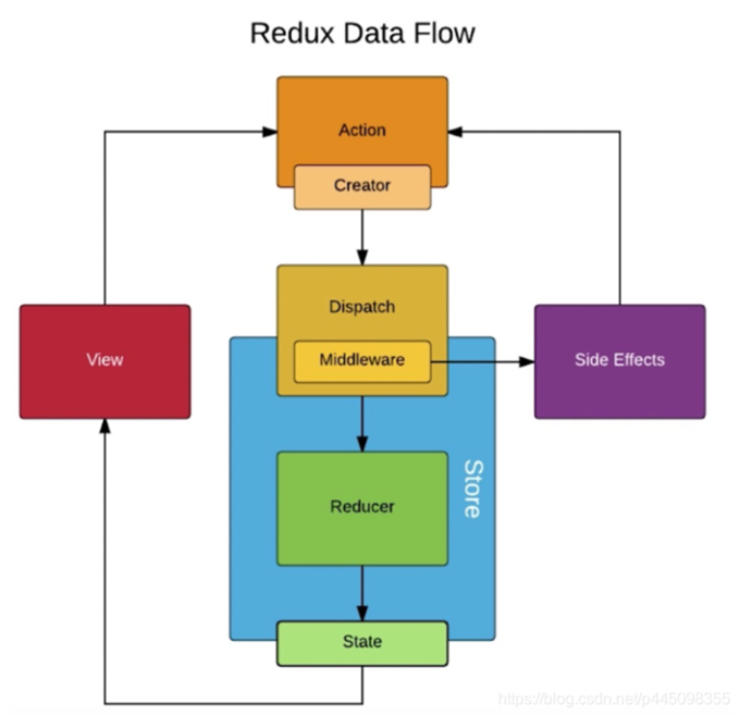 Redux的核心概念其实很简单:将需要修改的state都存入到store里,发起一个action用来描述发生了什么,用reducers描述action如何改变state tree 。创建store的时候需要传入reducer,真正能改变store中数据的是store.dispatch API。