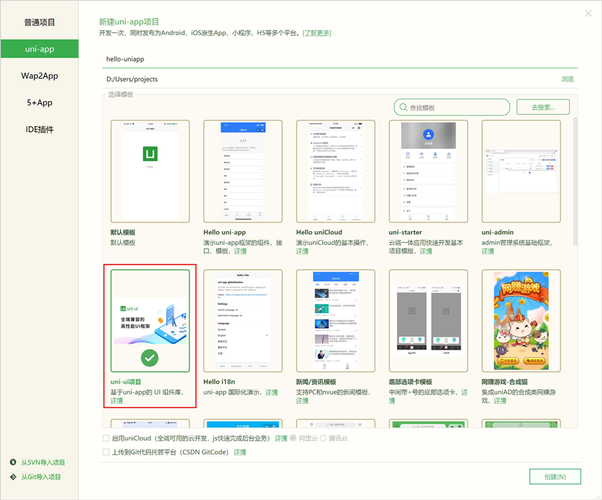 uni-app 是一个使用 Vue.js 开发所有前端应用的框架,开发者编写一套代码,可发布到iOS、Android、Web(响应式)、以及各种小程序(微信/支付宝/百度/头条/QQ/钉钉/淘宝)、快应用等多个平台。