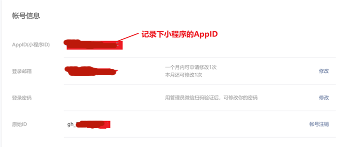 去微信公众平台,登录小程序后,查询自己注册的小程序的AppID,如下图所示: