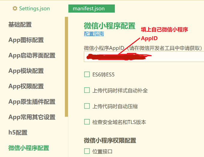 回到HbuilderX,在项目中双击manifest.json,配置自己微信小程序的AppID.