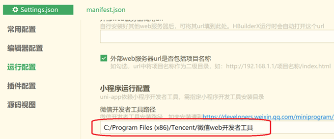 工具->设置->运行配置,里面设置微信开发者工具的安装路径。