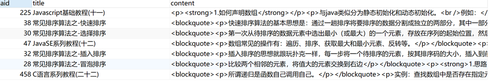select aid,title,content from article where flag = 0 and MATCH(title,content) against ("排序算法" in boolean mode);