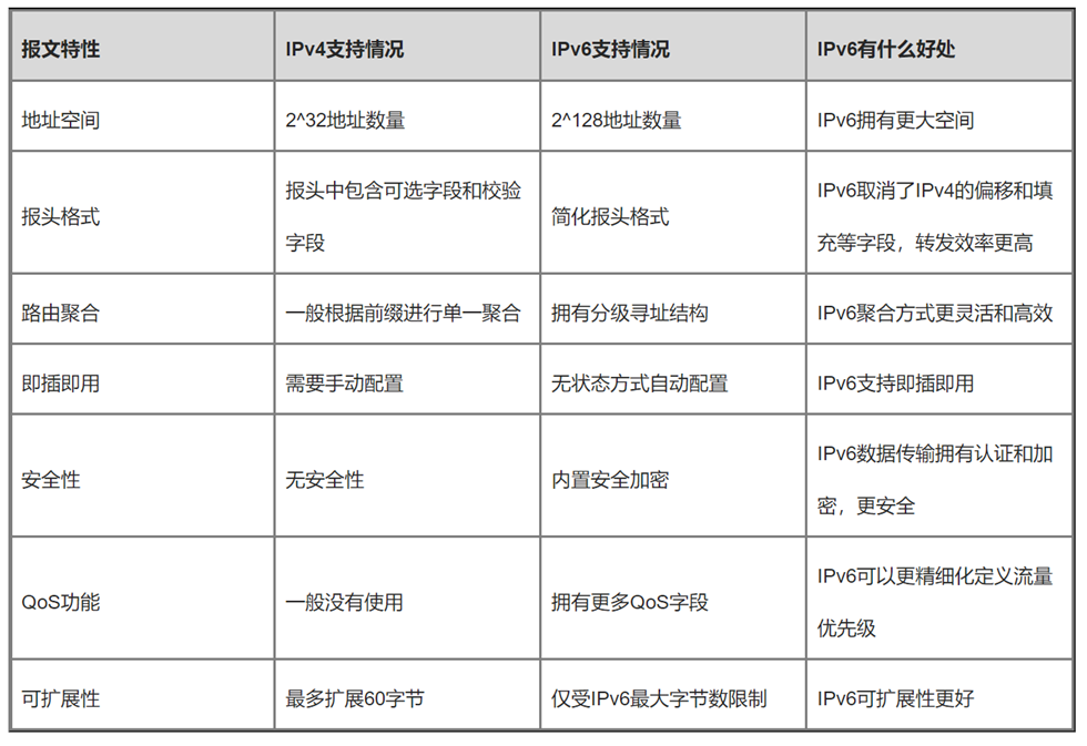 地址空间不同:IPv4中规定IP地址长度为32,IPv6中IP地址的长度为128。 安全性不同:IPV6集成了Internet协议安全标准因此比IPV4更安全。