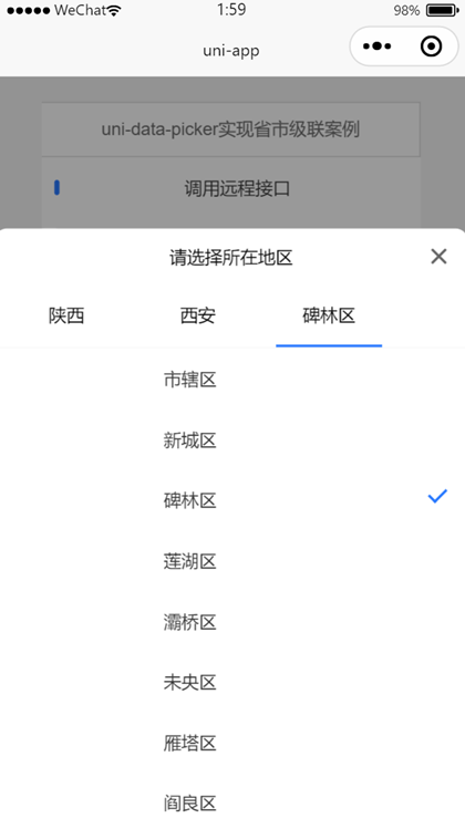 <text class="uni-h6">uni-data-picker实现省市级联案例</text>