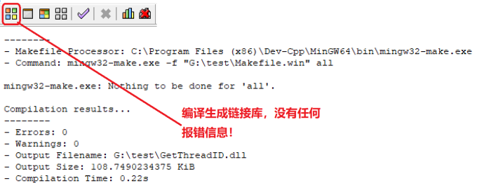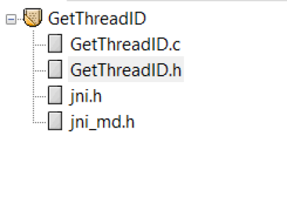 这里要特别注意:头文件里声明的方法名字一定要和源程序中定义的方法名字完全相同。其中的GetCurrentThreadId();方法就是windows获取线程ID的系统API。