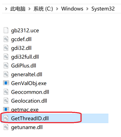 把GetThreadID.dll文件复制到C:\Windows\System32 目录下。如下图所示: