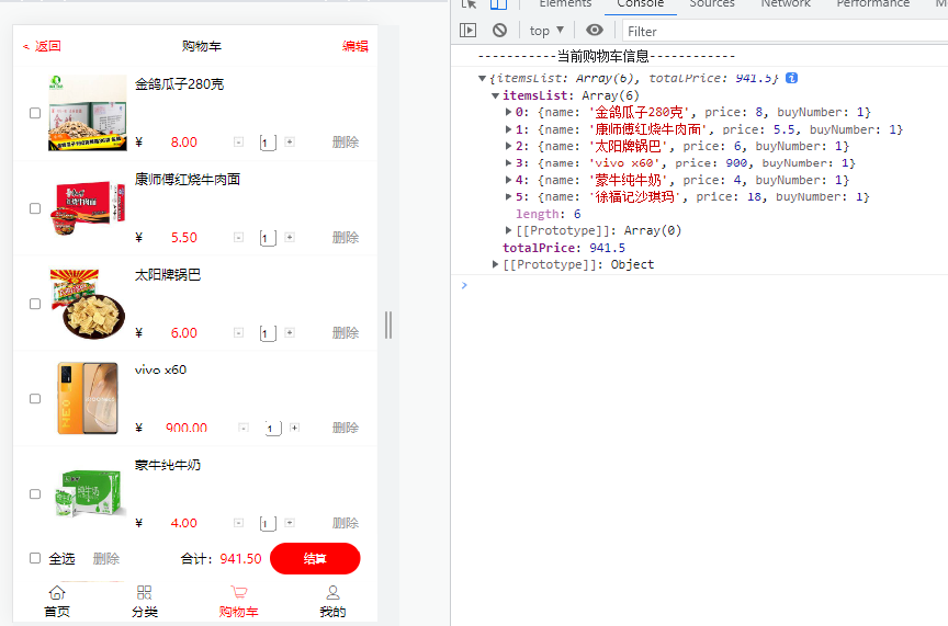 console.log("-----------当前购物车信息------------");